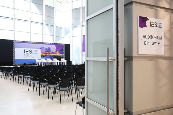 מיתוג חלל האודיטוריום כלל עיצוב דגלים, גב במה ושני מסכים מהם שודרו מצגות שעוצבו באותה השפה.